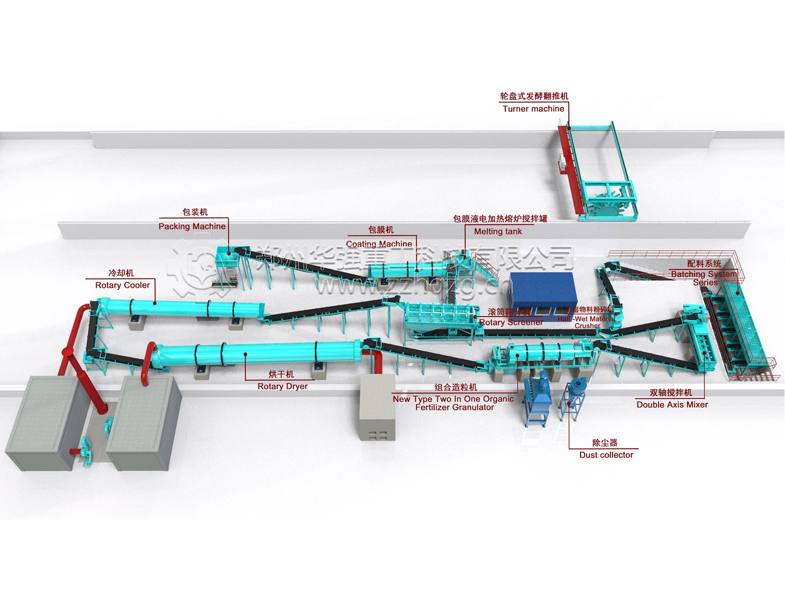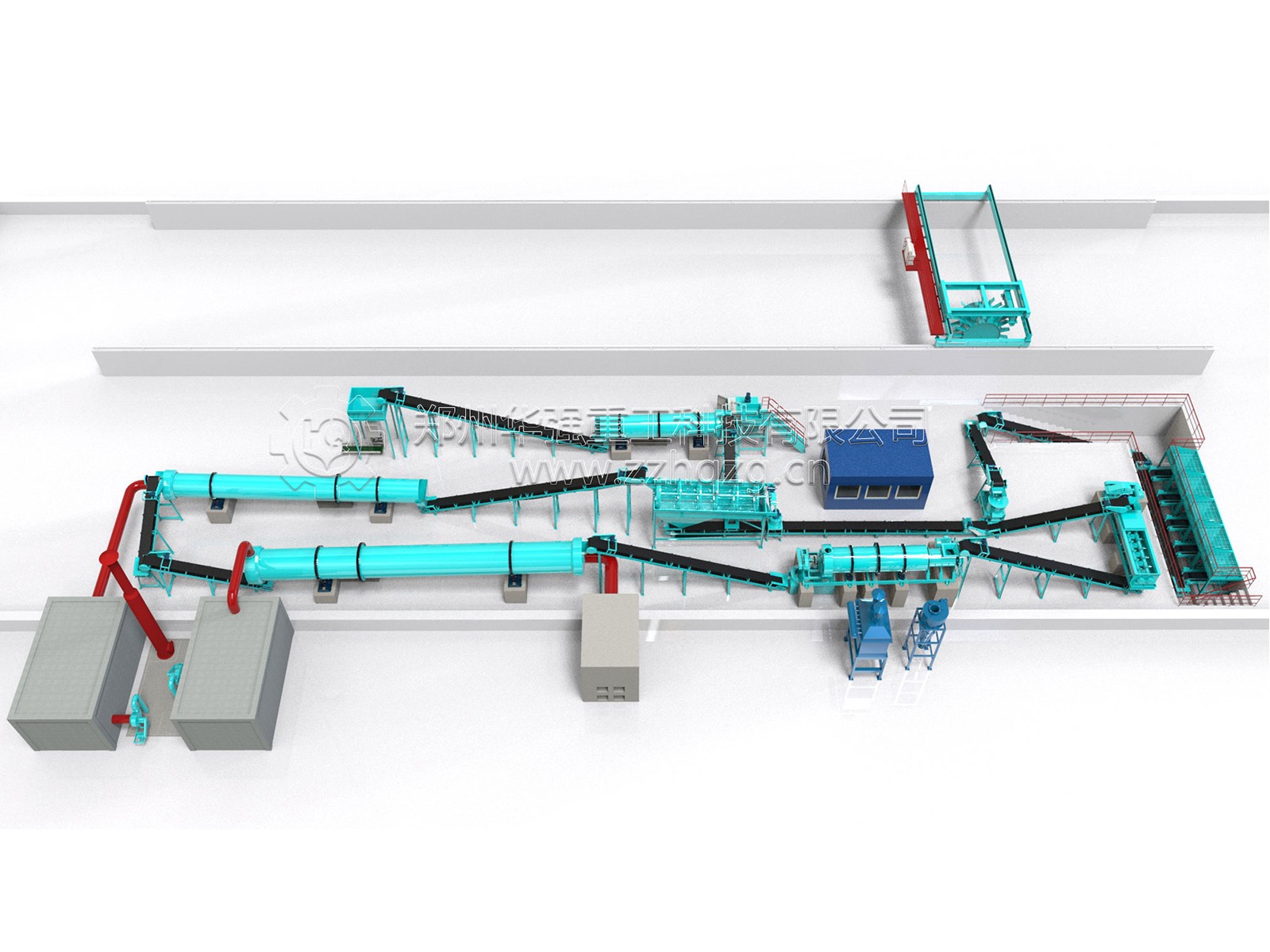 7、顆粒冷卻:烘干后的肥料顆粒溫度過高,易結(jié)塊,經(jīng)過冷卻后的,便于裝袋保存,和運(yùn)輸,采用冷卻機(jī)進(jìn)行冷卻。